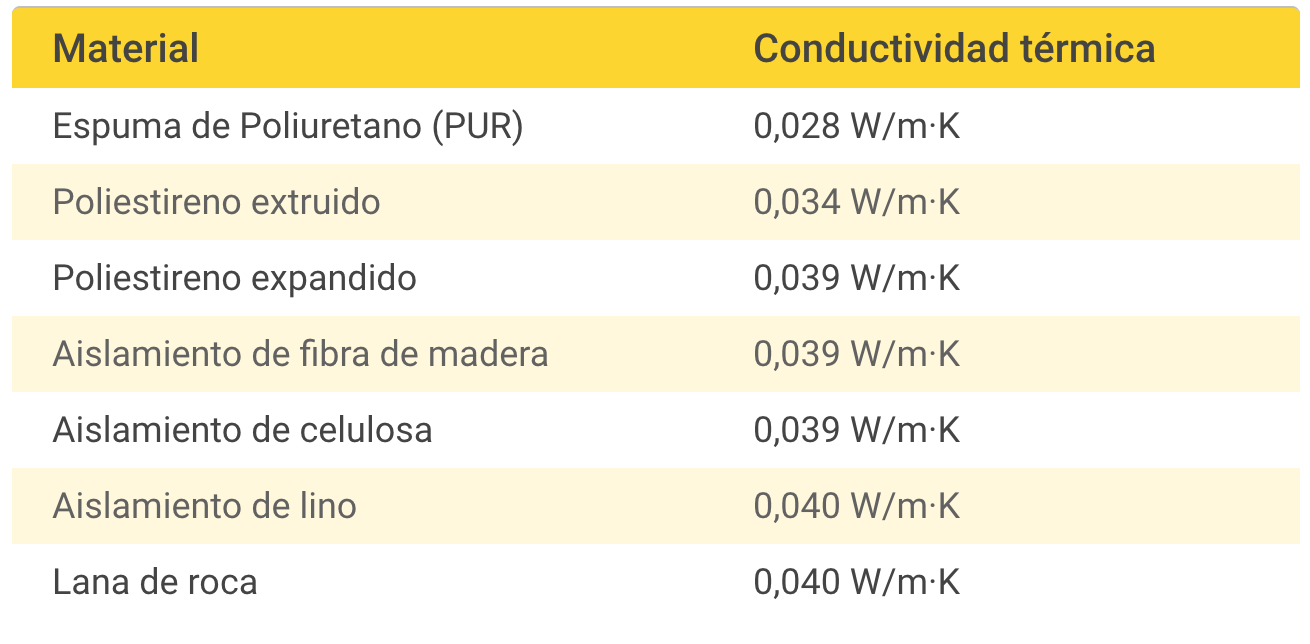 La conductividad térmica del PUR